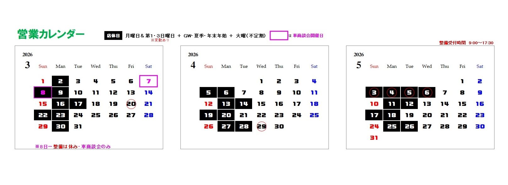 今後とも、車輌の販売・リース、車検・点検等の整備、もしもの時の鈑金修理・保険業務まで、トータルカーライフサポーターとして お付き合いをさせていただきたいと願っております。